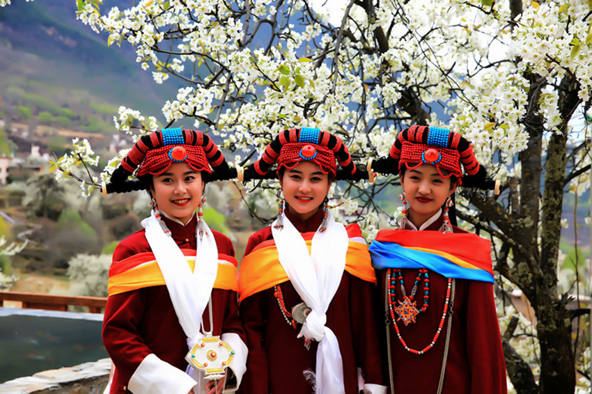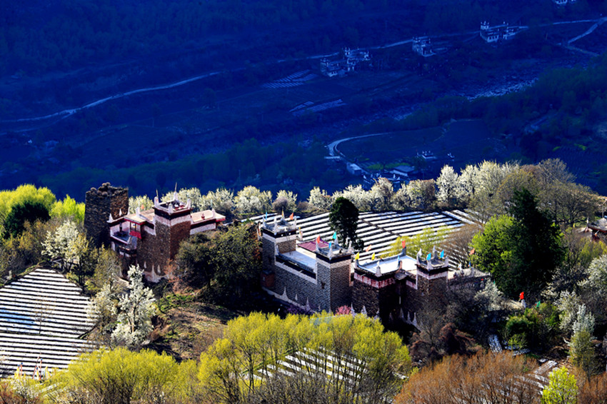 雪山、碉樓、藏寨、美人共同勾勒出一幅精美絕倫的春日藏寨梨花圖。春日里的梨花造就了丹巴的“三絕”。“一絕”即梨花配藏寨;“二絕”即梨花配碉樓;“三絕”即梨花配美人。