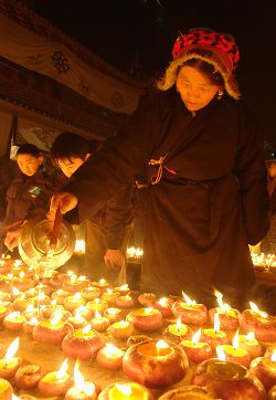 傳說藏歷十月二十五日,是藏傳佛教格魯巴(俗稱黃教)創(chuàng)始人宗喀巴大師圓寂成佛的日子。為了紀念這位杰出的宗教領(lǐng)袖,藏區(qū)各黃教寺廟和信徒于藏歷十月二十五日,舉行誦經(jīng)、磕頭,燈供儀式等隆重的祭祀活動,祭祀宗喀巴大師在天之靈和祈愿大師賜與善良的人們以吉祥幸福。