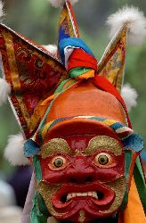 具有一千多年歷史的藏戲因所戴的面具不同分白面具和藍(lán)面具兩派,在《諾?!贰ⅰ蹲客奚D贰?、《朗莎姑娘》等八大藏戲劇目中,因人物角色不同有30多種多姿多彩的面具。(圖片來(lái)源:友多圖庫(kù))