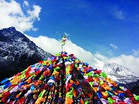 旅程的第七天,翻越雀兒山埡口,海拔5050米。因為山高路險,所以已經(jīng)在開鑿隧道,三年后這里的路將會荒廢,人們也不再從這里經(jīng)過。第一次翻越五千米的高度,心中難免激動,我跑下車,摸了摸被經(jīng)幡圍繞的紀念碑。我想人生總有很多第一次,以后還會第一次翻越六千、七千米。