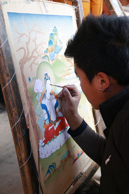 在河坡國(guó)家級(jí)非遺傳承河坡手工藝傳習(xí)基地及麥宿創(chuàng)辦的27個(gè)手工藝班中,你可以親眼目睹銅鑄、唐卡、藏刀、黑陶、牛羊毛絨編織、木雕、藏香、金銀加工、縫紉等藏傳手工藝制品的全過(guò)程及工藝大師們精湛的手工技藝;你可以欣賞世界級(jí)的工藝精品而被陶醉;你可以選購(gòu)或定做心悅的工藝品而不亦樂(lè)乎;你可以細(xì)心領(lǐng)會(huì)“教”與“學(xué)”是怎樣在這里達(dá)成完美融合而驚奇。你會(huì)被這里的非遺物質(zhì)文化遺產(chǎn)項(xiàng)目技藝代表性傳承人“一生做好一件事”的堅(jiān)守精神所感化,被他們不計(jì)名利、無(wú)私奉獻(xiàn)的品格所融化;你會(huì)被這里淳樸的民俗所吸引而流連忘返……