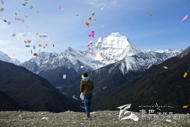 據(jù)介紹,這叫撒隆達,紙片上印著經(jīng)文,當?shù)厝讼嘈?,當紙片在風中飄飛,也是在念經(jīng),可以為自己祈福。