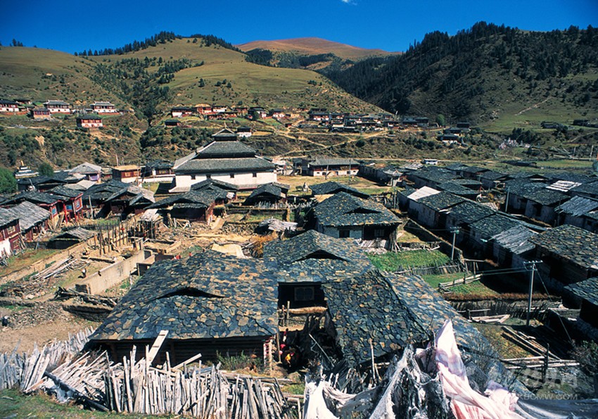 拉日馬意為“美如仙境,安居樂業(yè)”,曾經(jīng)是新龍至康定這條茶馬古道的貫穿之處。南距縣城60公里,北距道孚扎壩走婚大峽谷20余公里,海拔3600米。山、水、林、草原、珍禽異獸、扎宗寺、尊勝吉祥如意塔、甘珠爾石刻彩繪佛塔、石板藏寨的絕美搭配,盡顯中國(guó)西部神韻,素有“天堂部落拉日馬”和“中國(guó)石板藏寨”之美譽(yù)。拉日馬鎮(zhèn)有個(gè)叫扎宗村的寨子,這里的民居大多用石板蓋成,一宅一院,木柵欄、青石路、石板屋頂,古樸而實(shí)用。在藏區(qū)許多地方有石板蓋的房屋,但像拉日馬這樣集中、形成一個(gè)整體的不多見。
