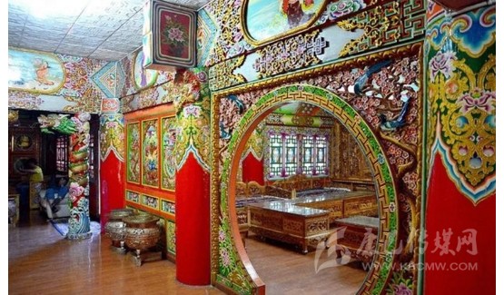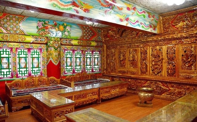 道孚民居修建最麻煩的工序是它的內(nèi)裝修。因為是技術(shù)活,親朋好友幫不上忙,而且時間長,花錢多。裝修的工匠根據(jù)主人的要求,先完成雕刻,再繪畫。一般來講,一棟中型的民居要用半年多的時間才能完成內(nèi)部裝修。雕刻與繪畫,是道孚民居的精華所在。道孚民居以其獨特的風格譽滿藏區(qū),口碑遠及海外。