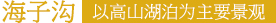 全長19.2 公里,溝內有花海子、白海子、藍海子等10 多個高山湖泊,湖水清澈見底,藍天、白云以及層次分明的四周山色倒映湖中,成群的高原黃鴨在水面飛翔,林中飛鳥美妙的歌喉讓人感受到海子的靈性。