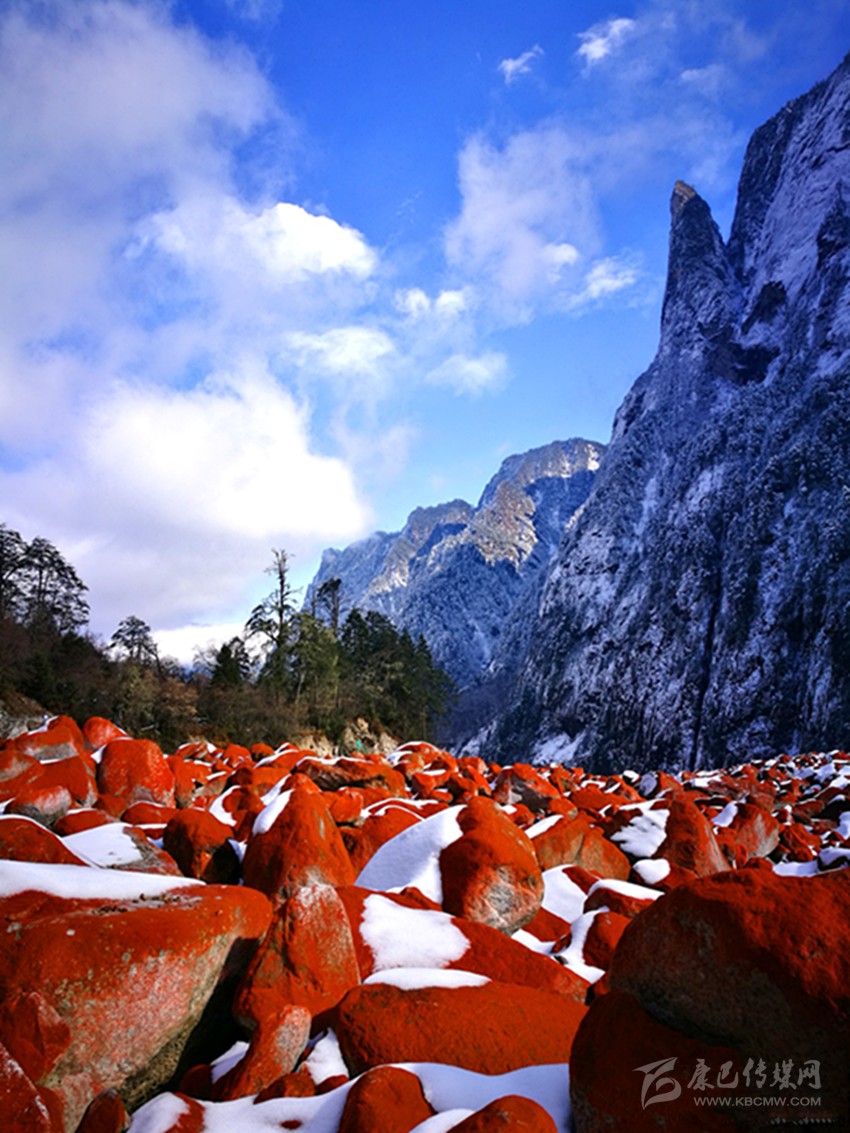 位于貢嘎山腳下綿延20多公里的紅石灘,更是與雪凇形成了強(qiáng)烈的視覺對(duì)比。燕子溝紅石歷經(jīng)冰川融水的沖擊,從遠(yuǎn)處望去,愈顯鮮艷和壯麗。據(jù)燕子溝風(fēng)景區(qū)工作人員介紹,紅石只能在特定的環(huán)境中生存,它對(duì)生存環(huán)境如海拔高度、溫度、濕度、空氣純凈度及日照條件等要求極為苛刻。燕子溝景區(qū)紅石灘自海拔2100米以上,一直到貢嘎山主峰腳下,綿延近20公里,好似一張紅地毯從天而降!就規(guī)模、密度以及顏色鮮艷度來說,幾乎無(wú)人能及,曾有專家稱燕子溝景區(qū)紅石灘為世界紅石公園。