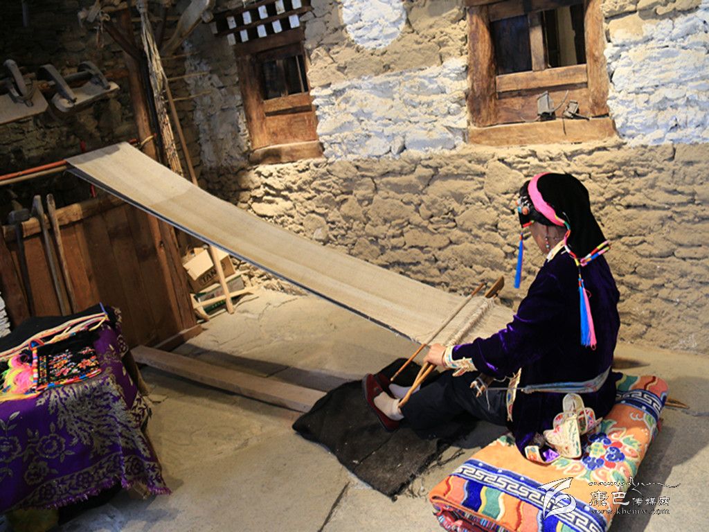 穿過(guò)古樸的大門,步入館中,映入眼簾的是古老的民間紡織技藝。一位藏族老阿媽端坐在古董般的織布機(jī)前,聚精會(huì)神地編織布匹,見(jiàn)到游人微笑回應(yīng),并未停下她手上的工作。年逾60的擁天秀,從十幾歲便學(xué)習(xí)織布,此間從未間斷。隨著紡織機(jī)逐漸被淘汰,擁天秀已成為傳承這門古老技藝的“活化石”。非遺展示館開館時(shí),擁天秀主動(dòng)表示,愿在此地免費(fèi)為游客展示丹巴紡織技藝。 “我喜歡丹巴刺繡和紡織工藝,平時(shí)在家里也會(huì)做,現(xiàn)在眼睛不很好,所以刺繡沒(méi)有辦法做了。游客們很喜歡在這里看我織布,他們有什么問(wèn)題,我都會(huì)給他們講解。”古老的嘉絨紡織技術(shù),通過(guò)擁天秀的雙手,漸漸被人們熟知,無(wú)數(shù)張游人與她的合影也被傳至網(wǎng)絡(luò)。經(jīng)她現(xiàn)場(chǎng)紡織,價(jià)值600元一匹的純手工布銷量也節(jié)節(jié)攀升,擁天秀研習(xí)多年的手工活在展示館中終于有了“用武之地”。