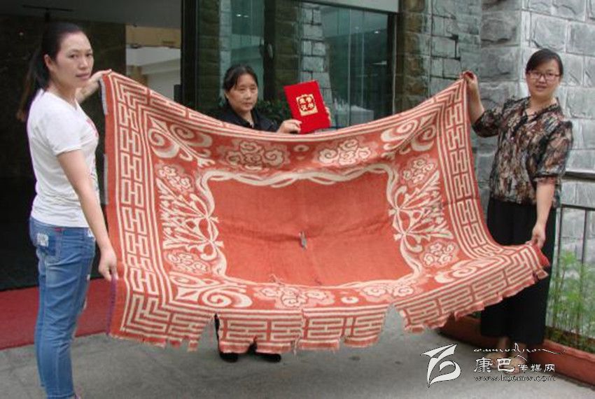 接過《榮譽證書》后,劉蘇芳帶著深情厚意說:“我們家贈送了那么多精品文物給了北京軍事博物館,一件也沒有給瀘定橋紀念館送去,這很不公平,送放一件老爹的精品文物給瀘定橋紀念館陳列比較好,它的教育意義更大些。這床紅毛毯是肖華將軍(上將)送給我父母親的結(jié)婚禮物,至今已有整整70個春秋啦!它是無價之寶。”