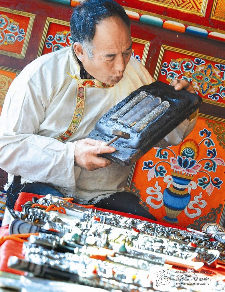 實際上,河坡藏族手工藝的歷史,可以追溯到1300多年前。自從松贊干布時期,藏王屯兵康區(qū),不斷向東南內地擴張起,這里就開始了刀槍、戈矛、弓箭等兵器的鑄造。河坡工匠利用當?shù)罔F礦土法煉鐵,作為鑄造兵器的原材料。附近的熱加鄉(xiāng)阿仁溝,如今還能見到當時的煉鐵遺跡。