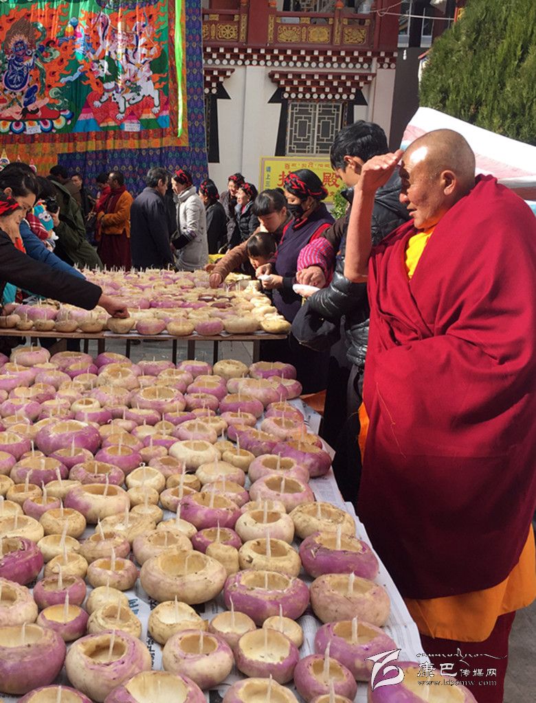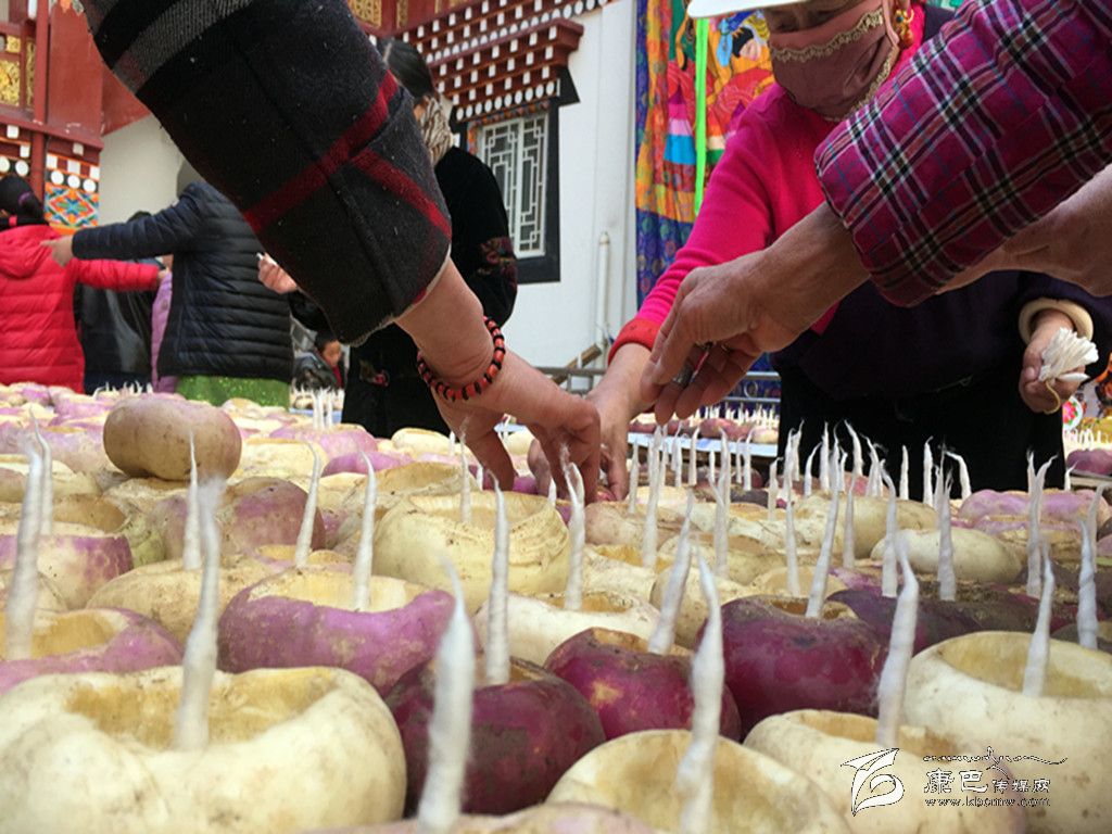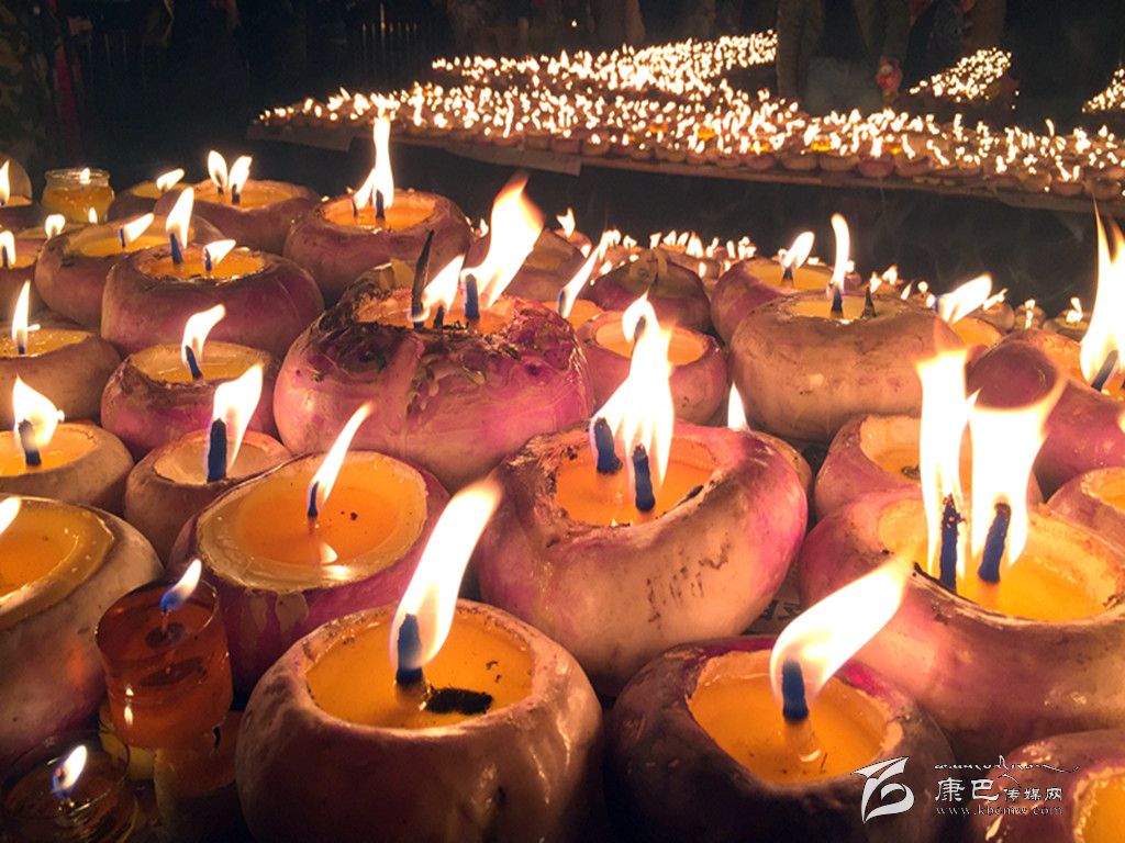 我州最具特色的燃燈節(jié)當(dāng)屬康定市城內(nèi)安覺寺舉辦的燈會。每到這一天,康定市民會將本地盛產(chǎn)的“芫根”洗干凈,然后掏空中間的瓤,在里面放置燈芯,做成酥油燈盞,入夜以后,數(shù)萬盞酥油燈一起點燃。因此又稱“芫根燈會”。12月6日晚,康定市民結(jié)伴相約前來安覺寺祈福,盛況空前。