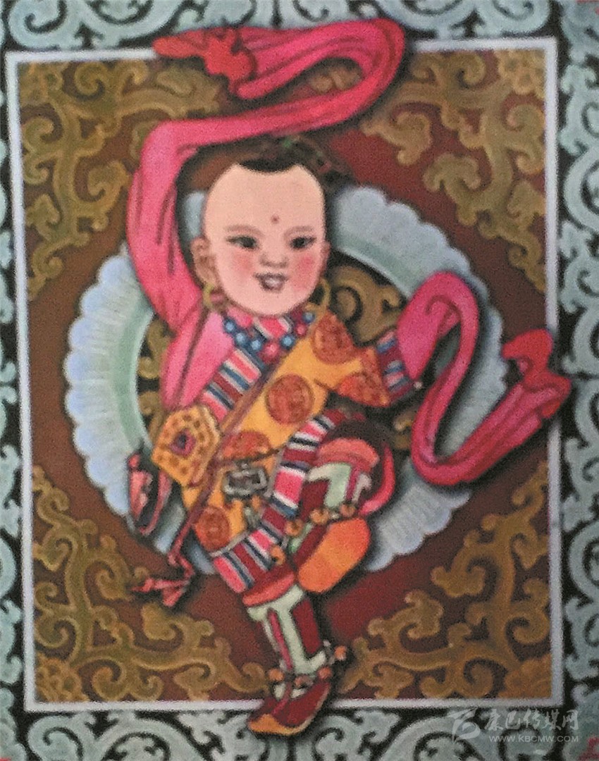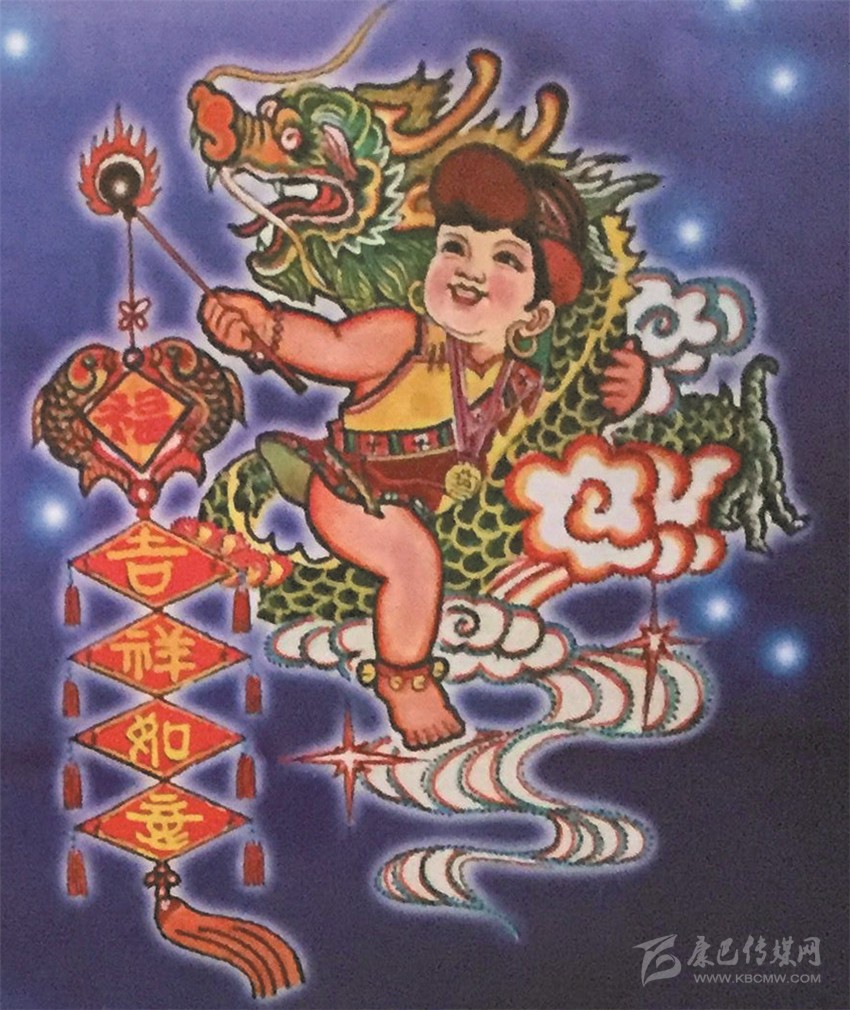 在內(nèi)容層面,年畫的視覺意義、被觀看者的意義得到追問和揭示。兒童心理學(xué)研究證明,兒童在三、四歲時知覺就已經(jīng)相當(dāng)成熟了,并且掌握了許多成人的知覺識別。他們能夠區(qū)別許多事物和人的面部表情,也能認識某些抽象幾何形式,對某些微妙的細節(jié)甚至有很高感受性。在一個家庭之內(nèi),年畫的觀看與意義釋讀是必然相關(guān)的事情。兒童成長期和語言習(xí)得期還有一個特別的“問詢”和“聽故事”時期。就是說兒童時期是一個描繪白紙的時期,萬事萬物都對他是新鮮、好奇、未知的,所以會有“十萬個為什么”;同時也特別喜好在提問之時聆聽回答,聆聽故事。居家生活近在眼前的年畫無疑是兒童詢問、提問、追問的重要對象,而對年畫內(nèi)容、寓意、象征做出解答、解讀、解釋,則是家中長者的義務(wù)。所以就流傳下來許許多多的年畫傳說和故事。而年畫的每一種畫幅、形象、人物、動物、花鳥、魚蟲、神靈等都在描繪、講述、故事,也有種種象征寓意,比喻、諧音、雙關(guān)等文化轉(zhuǎn)喻和修辭,是一個更深層的文化符號世界。
