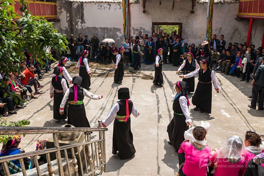 魚通鍋莊是魚通地區(qū)最傳統(tǒng)的一種舞蹈,在幾百年前已開始流傳,它在自身傳統(tǒng)文化的基礎(chǔ)上吸收了其他民族的文化,使其舞蹈獨(dú)具特色。魚通鍋莊動(dòng)作幅度小,剛?cè)岵?jì),步伐先慢后快,剛勁有力又柔美飄逸。在魚通地區(qū),跳鍋莊仍然是節(jié)慶婚宴時(shí)必不可少的內(nèi)容。無(wú)需什么演出場(chǎng)地,只要興之所至,人們便圍成一圈,中間放一張桌子,上面擺放酒、臘肉、錢、米或麥子。男女老少身著長(zhǎng)衫,分成兩隊(duì),男女領(lǐng)舞各一名,眾人隨著領(lǐng)舞之人對(duì)唱對(duì)舞??谥谐~一出,手、腳便跟著甩出,歡樂(lè)喜慶便隨之而至。同魚通山歌一樣,魚通鍋莊目前也只有一些上了年紀(jì)的人才會(huì)跳了,由于沒(méi)有文字和曲譜,古老的魚通歌舞正面臨著失傳的尷尬境況。