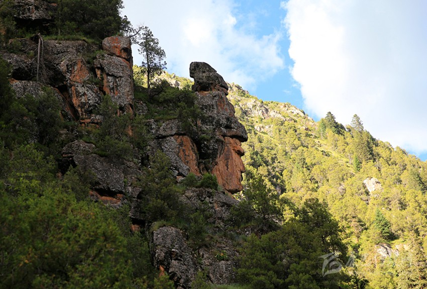 最近,藏族著名攝影家、藏地陽(yáng)光雜志主編根秋多吉先生與藏地陽(yáng)光記者丁真尼瑪,在德格縣柯洛洞鄉(xiāng)多爾家溝采訪時(shí),拍攝到了一組奇特的作品。鏡頭中這組山巖由于自然風(fēng)化的原因,形狀構(gòu)造像極了傳奇的嶺·格薩爾王。