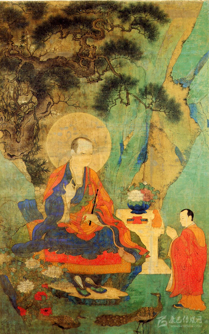 公元1408年,噶瑪巴·德銀協(xié)巴應(yīng)大明永樂(lè)皇帝之邀,前往南京弘法。明成祖朱棣命宮廷畫家將此隆盛之事繪制成了《噶瑪巴為明太祖薦福圖》,而后又把此圖做成織錦畫賜予了楚布寺。
