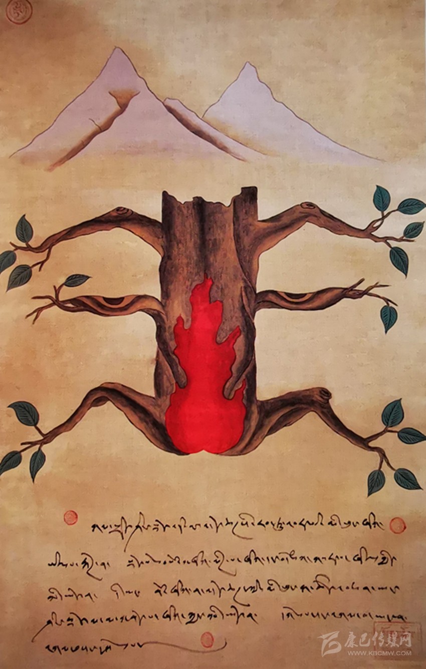 新概念唐卡《樹·火》。