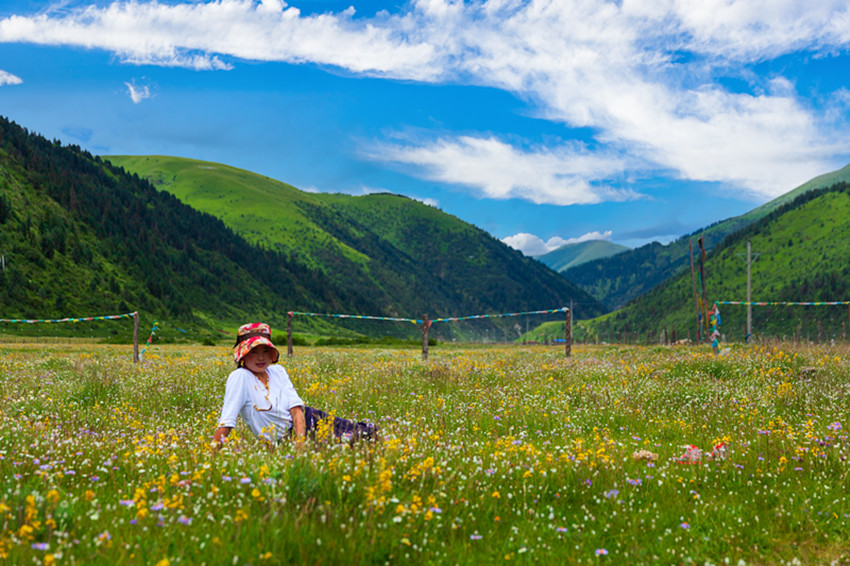 玉科,白猞猁皮鋪展開的長長山谷,依尼山是其心臟,扎拉山脈是其頭,噶科河、瑪科河是其雙臂,惹智塘和曲赤塘是其胸膛,革科和慶切科是其雙腳,措達以下則是其尾。這片山川地勢,晶瑩的雪峰、郁郁蔥蔥的林海、翠綠的草甸,清澈的碧湖,湛藍如洗的天空、潔白的云朵,棲息著豐富的珍稀動植物,構(gòu)成了一幅如詩如畫、動人心魄的原生態(tài)畫卷。一年四季景致千姿百態(tài),美不勝收。夏三月,百花盛開,大地鋪展五彩錦緞。秋三月,一片金黃,映襯得山崗黃燦燦。冬三月,雪花翻飛,大地銀裝素裹。難怪旅游達人們要驚呼,贊美這里是甘孜的阿勒泰。