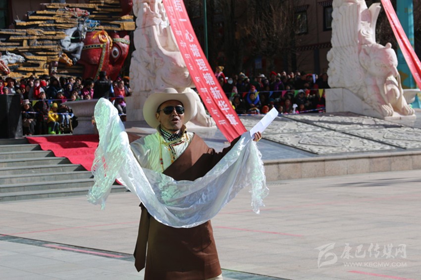 吉祥頌,藏語稱為“協(xié)巴”,是州級非物質(zhì)文化遺產(chǎn)之一。“協(xié)巴”在藏族民間生活中占有重要的地位,尤其在喜慶活動上,是一項不可或缺的重要儀式。州級非物質(zhì)文化遺產(chǎn)傳承人——高城鎮(zhèn)車馬村的翁堆老人手捧潔白的哈達,為觀眾表演了《協(xié)巴——中國夢、理塘夢》,展現(xiàn)了時代變遷中,“吉祥頌”這一民間藝術在思想內(nèi)容和藝術手法的創(chuàng)新之美。