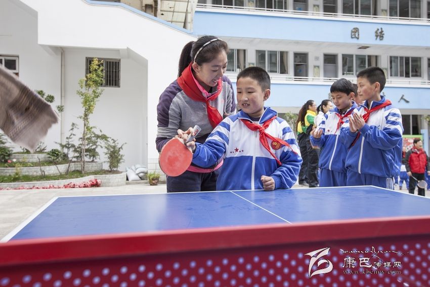 11日下午,考察團來到康定縣東大街小學(xué),師生們和牛劍鋒、汪鑫這兩位世界冠軍切磋起了球技。當(dāng)體操冠軍呂詩蒙帶領(lǐng)孩子們跳起韻律十足的健身街舞時,全校600多名學(xué)生用笑容和吶喊將校園點燃。牛劍鋒委員認(rèn)為,培養(yǎng)優(yōu)秀的體育后備人才,不僅需要專業(yè)青少年選手的努力,也需要夯實青少年體育的群眾基礎(chǔ)。