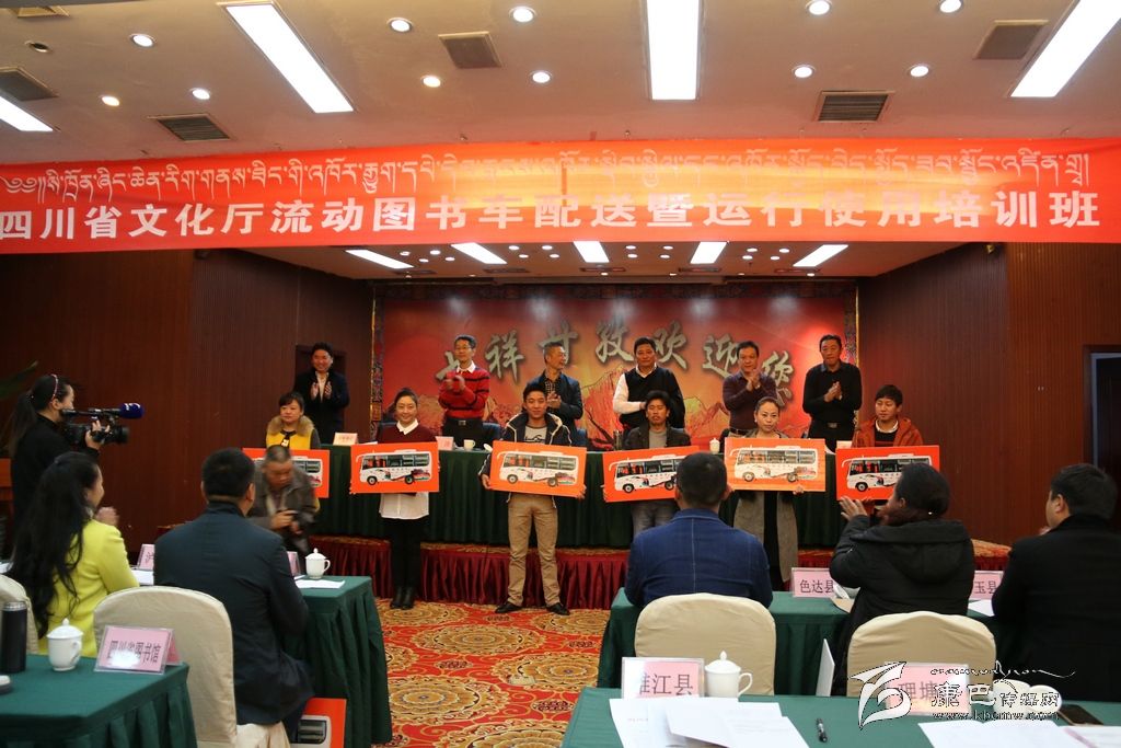 本網(wǎng)訊(記者 宋志勇文/圖)10月13日,四川省文化廳流動圖書車配送暨運行使用培訓(xùn)會在康定市舉行,共為我州配送流動圖書服務(wù)車18輛。省文化廳副廳長向華全,州委常委、宣傳部長相洛,省文化廳財務(wù)處處長潘沛等出席并為18個縣(市)發(fā)放了車鑰匙。