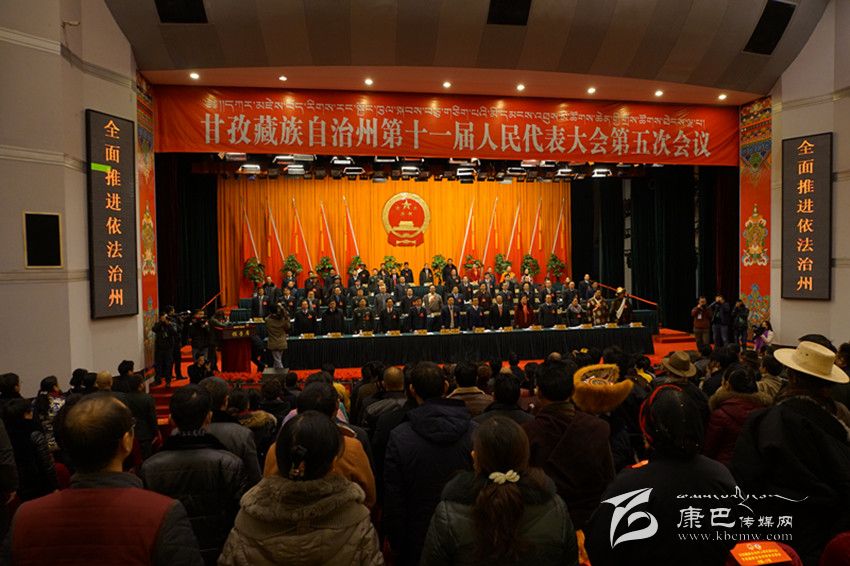 上午10時(shí)20分,劉成鳴宣布甘孜州第十一屆人民代表大會第五次會議開幕。全體起立,雄壯的中華人民共和國國歌在會場內(nèi)唱響。