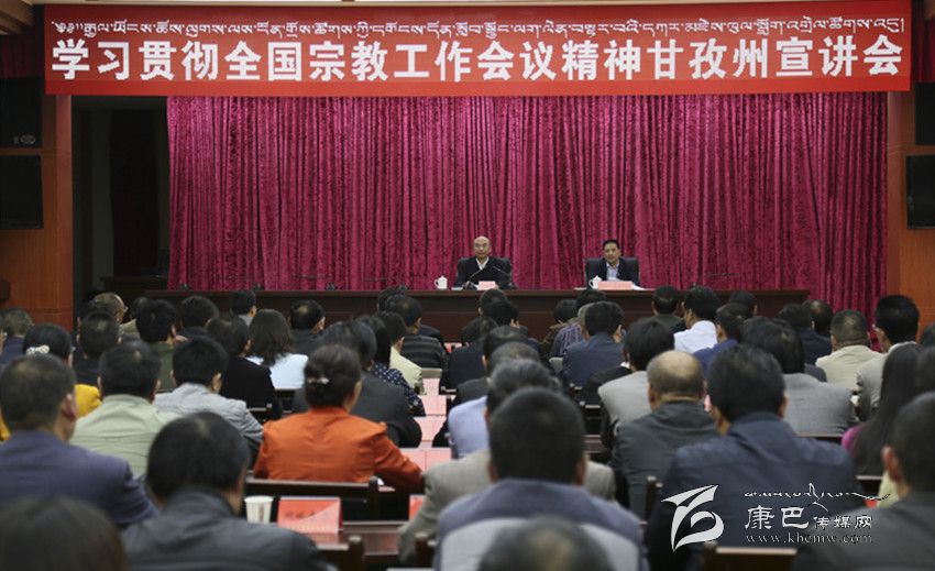 州委書記劉成鳴主持宣講會。他要求,全州各級黨員干部要結(jié)合本次宣講,認真學習領(lǐng)會好全國宗教工作會議精神,深入學習習近平總書記重要講話精神,準確把握宗教工作的基本方針和內(nèi)容要求,準確領(lǐng)會習近平總書記的新思想新觀點新要求,切實把思想和行動統(tǒng)一到講話精神上來;各地各部門要緊密結(jié)合“兩學一做”學習教育,以學習貫徹全國宗教工作會議精神為主線,通過州、縣、鄉(xiāng)三級聯(lián)動,堅持點面結(jié)合、分類施策、精準滴灌,迅速開展黨員干部、村干部、農(nóng)牧民群眾和寺廟僧尼四個層面的宣講活動,迅速掀起學習貫徹全國宗教工作會議精神的熱潮,凝聚全州各族干部群眾的思想共識;各級黨員干部要深刻領(lǐng)會宗教工作在全州工作大局中的特殊重要性,把握處理好宗教工作的“四大關(guān)系”,切實增強做好宗教工作的責任感和使命感,堅持情理法并舉,依法加強宗教事務(wù)管理,扎實推進寺廟分類管理達標升級,全方位、多角度加強僧尼的宣傳教育,繼續(xù)做好寺廟和僧尼的公共服務(wù),引導藏傳佛教與社會主義社會相適應(yīng)。