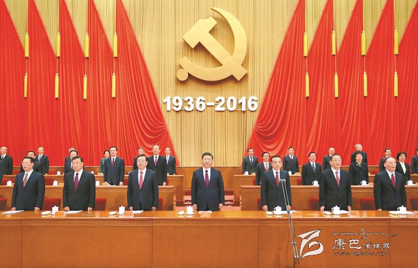 人民大會堂大禮堂內氣氛莊重而熱烈。主席臺上方懸掛著“紀念紅軍長征勝利80周年大會”會標,帷幕正中是中國共產黨黨徽和“1936-2016”字標,10面紅旗分列兩側。大禮堂二層眺臺懸掛標語:緊密團結在以習近平同志為總書記的黨中央周圍,繼承和弘揚偉大長征精神,不忘初心,繼續(xù)前進,走好新的長征路!