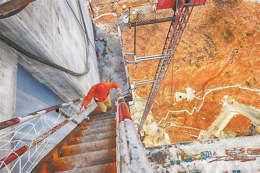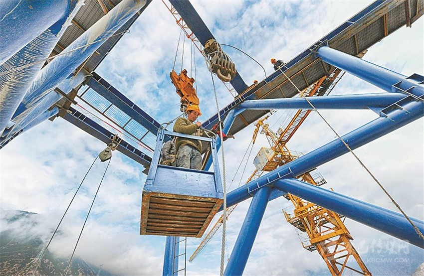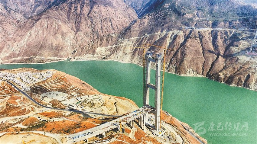 瀘定大渡河興康特大橋是雅康高速公路的重點(diǎn)控制性工程之一,是一座建在高海拔、高地震烈度帶上的超大跨徑鋼桁梁懸索橋,采用鋼混疊合橋道系,造價(jià)超過10億元,因建設(shè)技術(shù)難度大被譽(yù)為“川藏第一橋”。兩岸主墩索塔高188米,塔頂至河面垂直高差364米,橋橫跨大渡河,但在河中沒有橋墩,采取的是懸索橋設(shè)計(jì),在兩岸修建兩塔、兩錨,作為支撐和受力,橋面以懸索拉伸。未來,大橋?qū)⒁?/span>1100米的超長跨徑連通大渡河兩岸,變天塹為通途。 (何海洋 攝影報(bào)道)