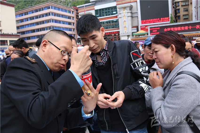 啟動儀式后,在康定情歌廣場上,來自州食安委和康定市食安相關(guān)成員單位通過現(xiàn)場咨詢、板塊展示、張貼海報(bào)標(biāo)語、發(fā)放資料等方式,為前來關(guān)注食品安全的市民們發(fā)放和講解相關(guān)問題。在現(xiàn)場,記者看到廣大市民關(guān)注最多的是假冒偽劣食品,對于如何識別,現(xiàn)場工作人員都一一進(jìn)行了耐心細(xì)致地講解。