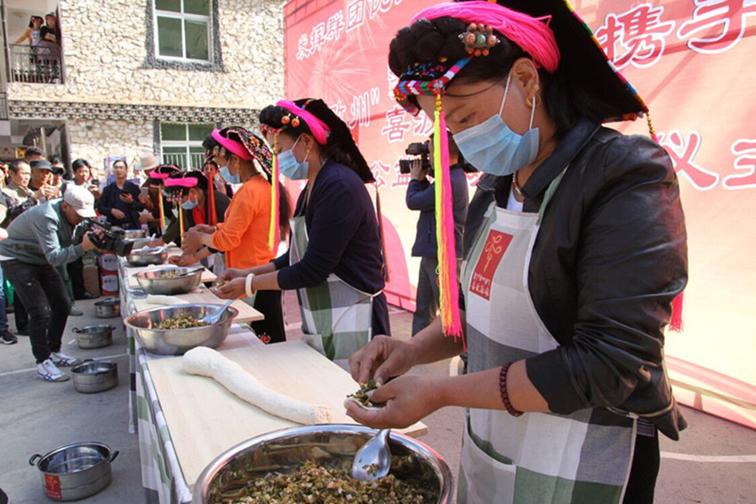 啟動儀式上,五家群團部門負責人分別上臺接收“喜波勒雄”公益助貧行動任務包。隨即,開展的“喜波勒雄”新時代講堂、包酸菜包子、民俗接待基礎技能比拼、栓頭帕比賽、繡藏繡比賽等“五洗一掃”評選分項活動人氣爆棚,過往游客紛紛駐足,盛贊當?shù)孛袼罪L情獨具特色。