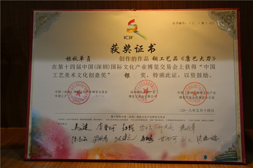 據(jù)了解,在本次深圳文博會上,我州參加十四屆深圳文博會參賽展品中有10件工藝品獲獎。其中,白玉縣董察文化公司參展作品首當(dāng)其沖獲得工藝美術(shù)文化創(chuàng)意金獎。爐霍縣珍馬文化藝術(shù)公司、爐霍縣華彩文化傳播有限公司、白玉縣河坡藏民族手工藝公司、新龍藥泥面具分別獲得工藝美術(shù)文化創(chuàng)意銀獎;德格縣多普溝噶瑪噶孜文化旅游公司、甘孜州郎卡杰唐卡有限公司、丹巴木版畫、康體書法、德格絳紅天堂文化旅游公司分別獲得工藝美術(shù)文化創(chuàng)意銅獎。同時,州文體廣新局和康巴文化研究院獲優(yōu)秀組織獎;甘孜州全境文化產(chǎn)業(yè)有限發(fā)展公司和康巴聚慧文化傳播有限公司獲得優(yōu)秀展示獎。其它參展商均獲得本屆文博會優(yōu)秀入圍獎。國家一級手工藝美術(shù)大師、爐霍縣華彩文化傳播有限公司馮建華:“這一次是我公司第一次在文博會上參展,就榮獲銀獎,這要感謝黨委政府和文化部門提供的平臺。相信在此基礎(chǔ)上狠下功夫,越做越好,將陶瓷藝術(shù)與唐卡藝術(shù)很好的發(fā)揚光大?!?br/> “深圳文博會組委會對參展優(yōu)秀單位、優(yōu)秀個人及產(chǎn)品進行表彰,我州在設(shè)置的全部獎項中均有收獲,獲獎數(shù)量在全國地市級參展單位中名列前茅,成為全省獲得獎項最多的市州,因此在本屆文博會上反響強烈,完全達到了既定目標(biāo)?!笨蛋臀幕芯吭贺?fù)責(zé)人牛麥青云說,能榮獲這樣的成績,都是在本屆文博會組委會的大力支持和幫助下,在省委、省政府和州委、州政府、州委宣傳部、州文體廣新局的關(guān)心和全力支持和指導(dǎo)下,并在各參展商家的積極配合下所取得的。下步作為文化系統(tǒng),將以供給側(cè)改革引領(lǐng)文化消費,弘揚我州傳統(tǒng)民族文化,推動全州非遺文化產(chǎn)品更上一層樓作出努力。