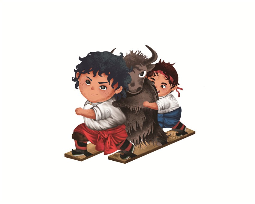 據(jù)悉,該卡通形象由康巴文化研究院設(shè)計(jì),最早出現(xiàn)在去年的環(huán)貢嘎山百公里越野挑戰(zhàn)賽上,在各國(guó)越野高手云集的賽場(chǎng)上,一名身著傳統(tǒng)服飾的小藏娃牽著牦牛奔跑的形象令人過(guò)目不忘。而此次省民運(yùn)會(huì)將繼續(xù)沿用“小藏娃和牦牛洛洛的形象”,康巴文化研究院組織專人設(shè)計(jì),按照既生動(dòng)可愛又準(zhǔn)確把握運(yùn)動(dòng)項(xiàng)目特征的要求,將此次運(yùn)動(dòng)會(huì)中的蹴球、陀螺、射弩、高腳競(jìng)速、板鞋競(jìng)速、押加、珍珠球、民族式摔跤等8個(gè)競(jìng)賽項(xiàng)目以卡通形象展現(xiàn)。