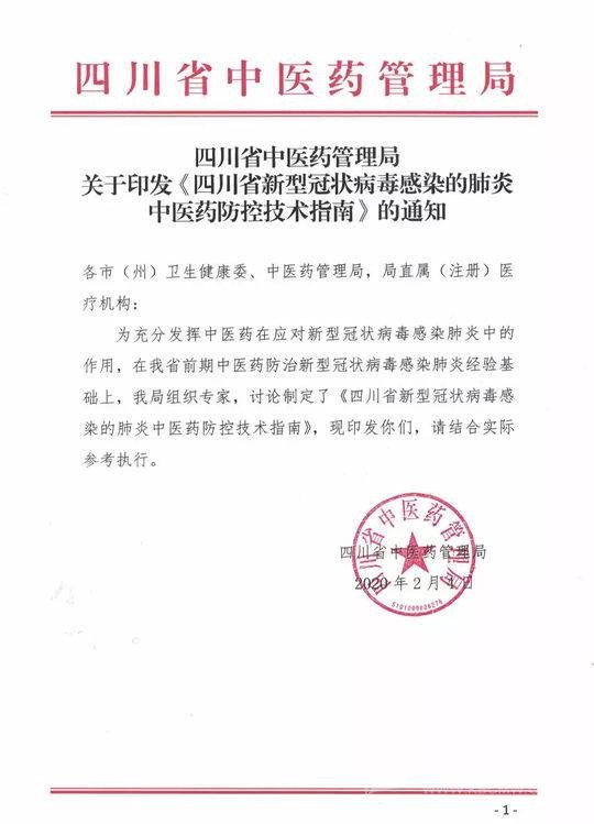 2月4日,為充分發(fā)揮中醫(yī)藥在應(yīng)對(duì)新型冠狀病毒肺炎中的作用,在前期中醫(yī)藥防治新型冠狀病毒肺炎工作基礎(chǔ)上,四川省中醫(yī)藥管理局組織專(zhuān)家討論制定了《四川省新型冠狀病毒感染的肺炎中醫(yī)藥防控技術(shù)指南》。