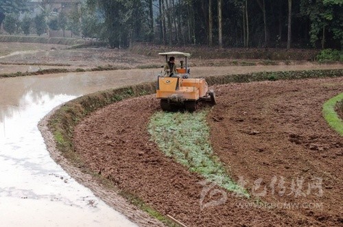 尋聲而去,記者看到一臺旋耕機正在一塊水田間緩慢行駛,刀片把枯黃的稻根、嫩綠的野草一并打碎,泥花飛濺,激起土里特有的潮味兒。