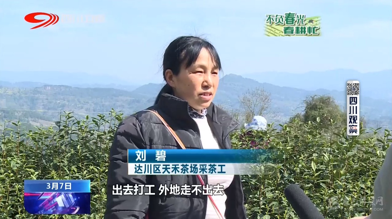 達(dá)川區(qū)天禾茶場采茶工劉碧:我們今年這個疫情期間出去打工外地走不出去,所以說我們聽了茶場招工,我們就到茶場找工作,掙點錢,賺點生活費(fèi)。