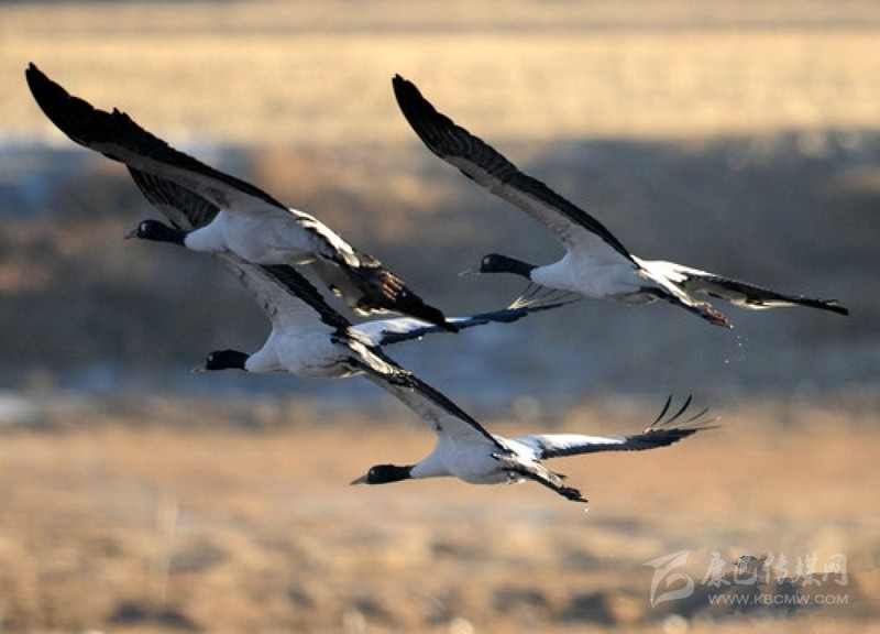 黑頸鶴在青藏高原翱翔(2013年12月5日攝)。新華社記者 陳天湖 攝