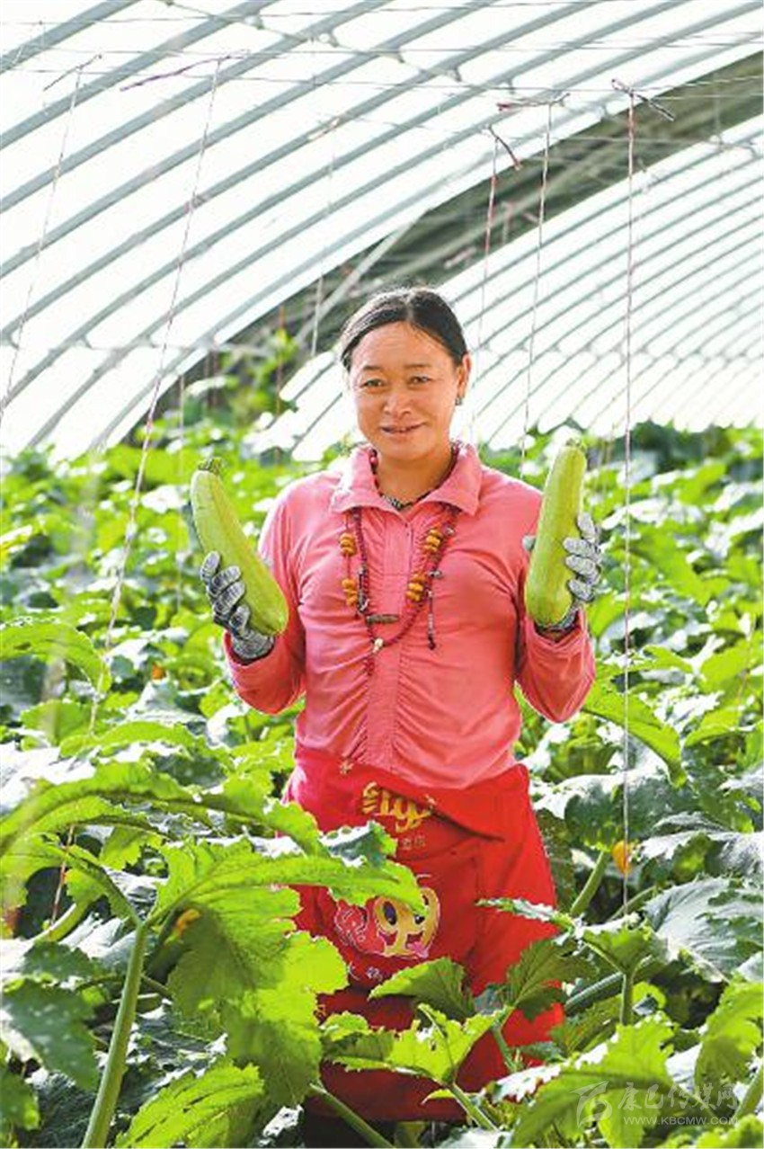 近日,在鄧瑪農業(yè)觀光產(chǎn)業(yè)科技示范園內工作的村民展示剛摘下的西葫蘆。 四川日報全媒體記者 楊樹 攝