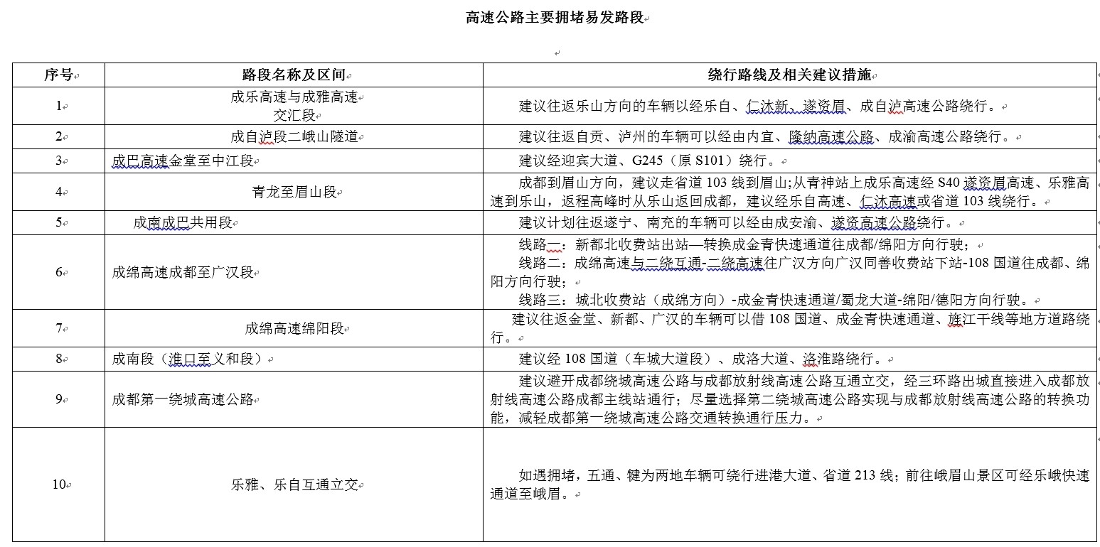 據(jù)氣象部門信息,元旦期間以多云或晴天為主,基本無惡劣天氣,適宜外出。結(jié)合我省疫情防控情況和小長假出行特點(diǎn),預(yù)計元旦假期,群眾出行以省內(nèi)探親、短途出游為主,多集中在成都及其周邊地區(qū),部分通往冬季熱門景區(qū)的路段流量將較大增長。