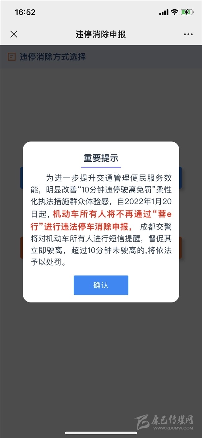 今天,記者獲悉,為進一步提升交通管理便民服務效能,明顯改善“10分鐘違停駛離免罰”柔性化執(zhí)法措施群眾體驗感,自2022年1月20日起, 機動車所有人將不再通過“蓉e行”進行違法停車消除申報,成都交警將對機動車所有人進行短信提醒,督促其立即駛離,超過10分鐘未駛離的,將依法予以處罰。