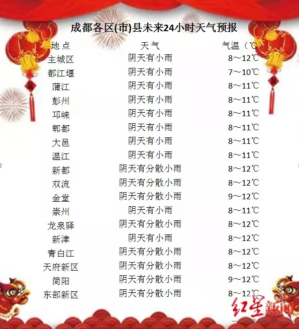 成都方面,預(yù)計(jì)未來七天,全市以陰冷天氣為主,氣溫逐步降低,且雨日較多。高海拔山區(qū)有雨夾雪或小雪,日平均氣溫將從當(dāng)前的10℃左右下降至4℃左右;最高氣溫降幅將達(dá)10℃左右。