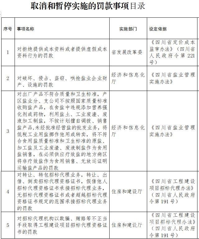 匯總所有意見建議后,《四川省人民政府關于取消和暫停行使一批罰款等事項的決定(征求意見稿)》決定取消和暫停行使25項罰款事項,其中取消19項,暫停行使6項。罰款事項取消和暫停行使后,依照法定程序修訂相關省政府規(guī)章。