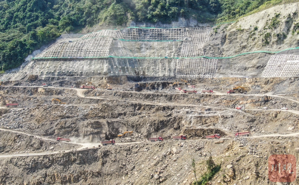 “四季度我們拿出了決戰(zhàn)的姿態(tài),加大了石料開采和運(yùn)輸強(qiáng)度。挖掘機(jī)從之前8臺(tái)增加到13臺(tái),重型卡車也保持在80輛至120輛之間,后面還將增加到150輛左右?!睋?jù)張鐸介紹,天氣好的時(shí)候,料場還要進(jìn)行夜間施工。