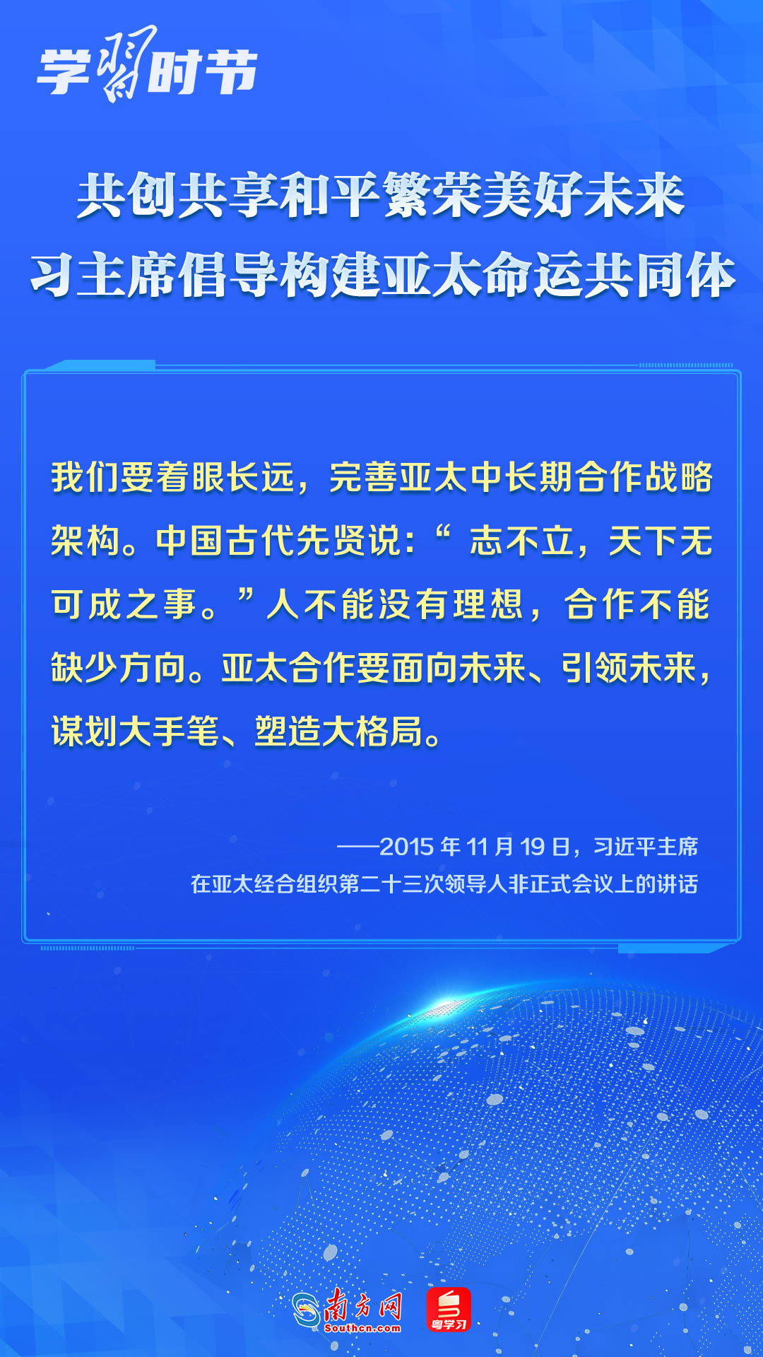 中國一直是APEC的積極參與者、貢獻(xiàn)者,為推動建設(shè)亞太大家庭發(fā)揮了重要作用。習(xí)近平主席多次出席APEC會議,以中國主張促進亞太合作,以中國貢獻(xiàn)推動亞太發(fā)展,以中國智慧凝聚亞太共識,多次闡述構(gòu)建開放包容、創(chuàng)新增長、互聯(lián)互通、合作共贏的亞太命運共同體的理念主張和重大意義,讓我們一同學(xué)習(xí)。