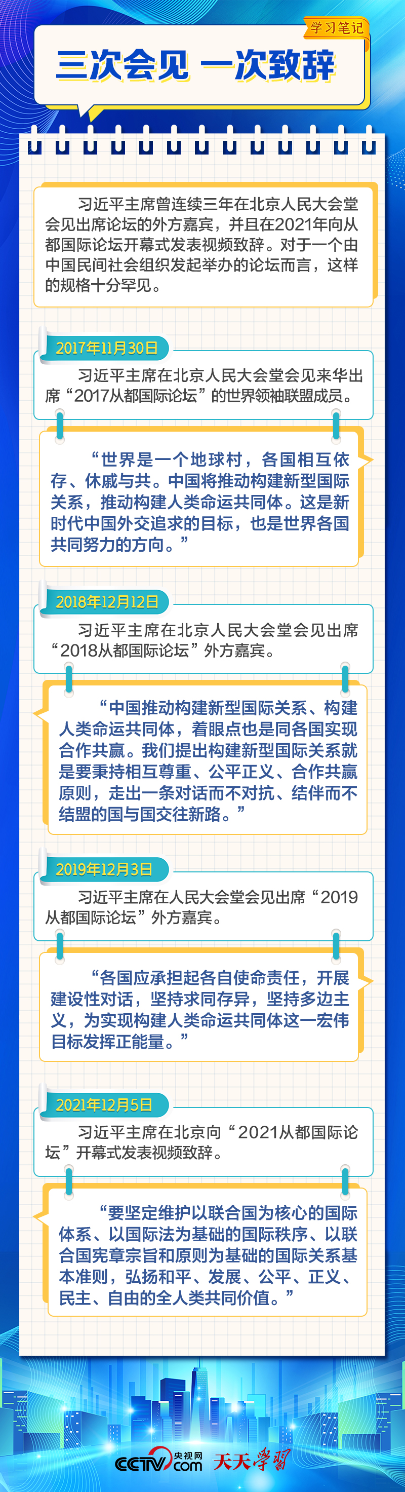 天天學(xué)習(xí)12月4日,習(xí)近平主席在致“2023從都國(guó)際論壇”的賀信中強(qiáng)調(diào),面對(duì)前所未有的世界之變、時(shí)代之變和歷史之變,人類社會(huì)必須團(tuán)結(jié)起來(lái),堅(jiān)持互學(xué)互鑒、開(kāi)放包容、合作共贏,弘揚(yáng)全人類共同價(jià)值,共同建設(shè)更加美好的世界。