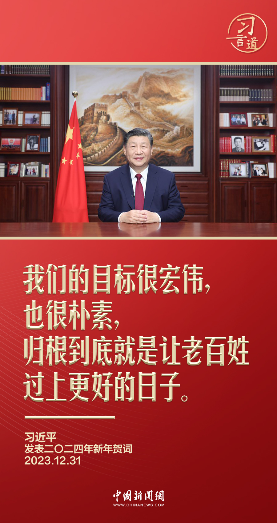 一元復(fù)始,歲律更新。12月31日晚,國(guó)家主席習(xí)近平的2024年新年賀詞如約而至。在賀詞中,習(xí)近平再次強(qiáng)調(diào)中國(guó)共產(chǎn)黨孜孜以求的目標(biāo)——“讓老百姓過上更好的日子”。