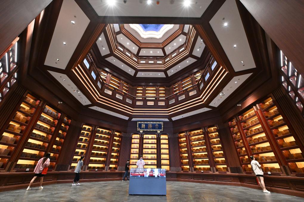 ?? 2022年7月30日,觀眾在中國國家版本館中央總館文瀚廳內(nèi)參觀。當(dāng)日,中國國家版本館開館暨展覽開幕式在中國國家版本館中央總館舉行。新華社記者 李鑫 攝