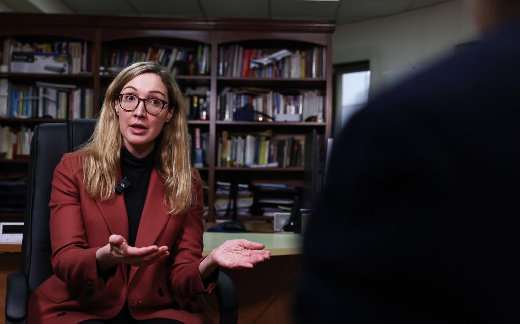 ??“當我們來到中國時就會發(fā)現,這是一個充滿希望的國家?!敝蟹ńń?0周年之際,法國前總統(tǒng)夏爾·戴高樂將軍的曾孫女納塔莉·戴高樂在法國巴黎接受新華社記者專訪,暢談她眼中的法中關系60年,講述她與中國的故事。新華社記者高靜攝