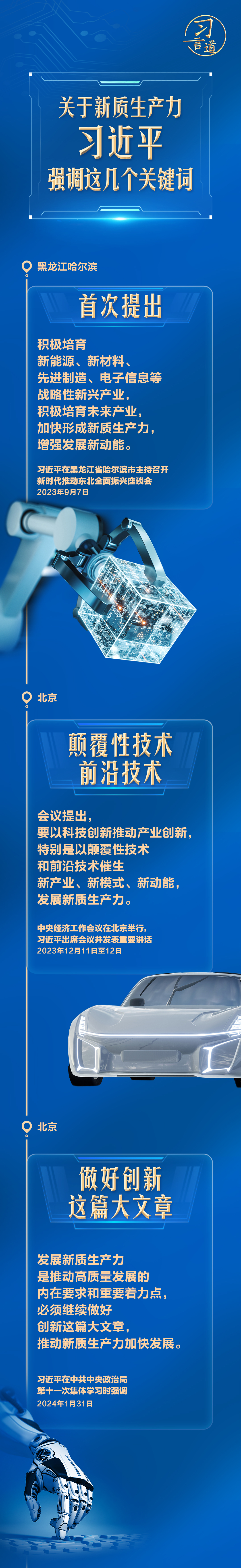 從去年9月在黑龍江考察時首次提出,到今年1月在中央政治局第十一次集體學(xué)習(xí)時系統(tǒng)闡述,再到此次兩會期間強(qiáng)調(diào),習(xí)近平多次談到新質(zhì)生產(chǎn)力。讓我們沿著總書記的足跡,一起研讀。