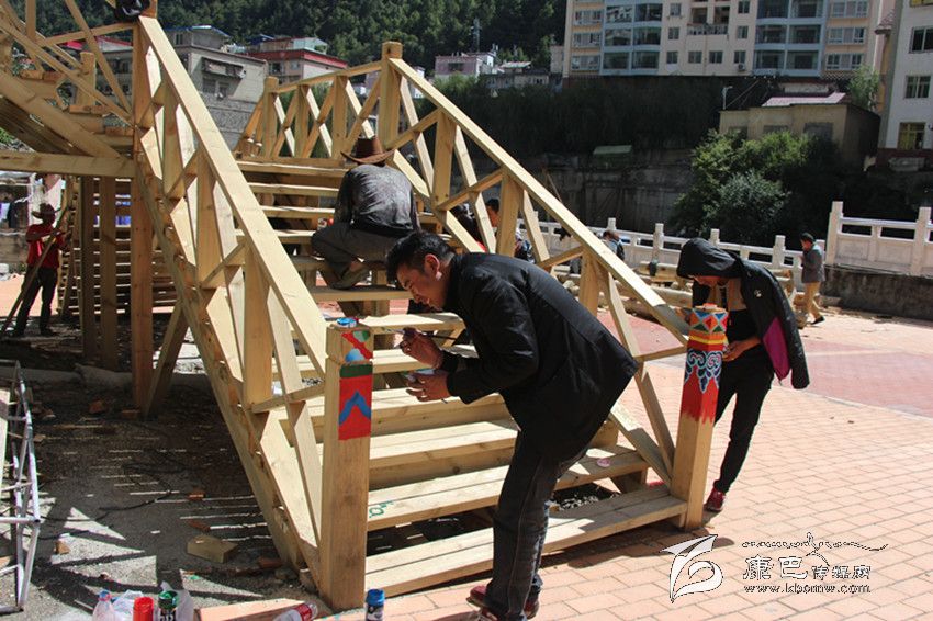 “在深秋艷陽的照射下,環(huán)山路木質(zhì)棧道的長廊上圖案絢麗色調(diào)鮮明?,F(xiàn)場有序地堆放著紅色的地磚和白色的木材。藏族畫匠在專心描摹,工人們的鋸子有節(jié)奏地發(fā)出聲音。在公主橋的施工現(xiàn)場,村民們有說有笑地忙著平路基,抬石頭、撮泥巴、砌墻。”這是近日筆者在康定文成環(huán)山路施工現(xiàn)場看到的熱鬧場面。