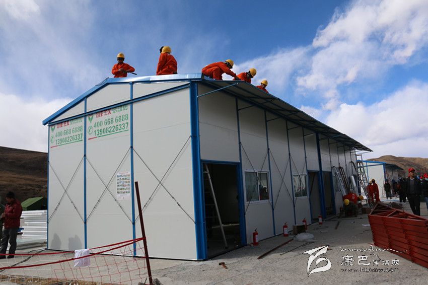 據現場來自雅致集成房屋有限公司的專業(yè)技術人員介紹,搭建一間板房,需要先支起框架,然后將面板和頂板逐步安裝。在高原極端天氣下,夜間建造板房難度可以說是非常之大。來自成都的專業(yè)技術人員們雖然經驗豐富,但也很少用到適合高原的特殊材質材料,很多時候都需要研究好方案、對策才能動工,所以進度有一點耽擱,否則的話一夜的時間里會有更多的板房呈現在孩子們的面前。