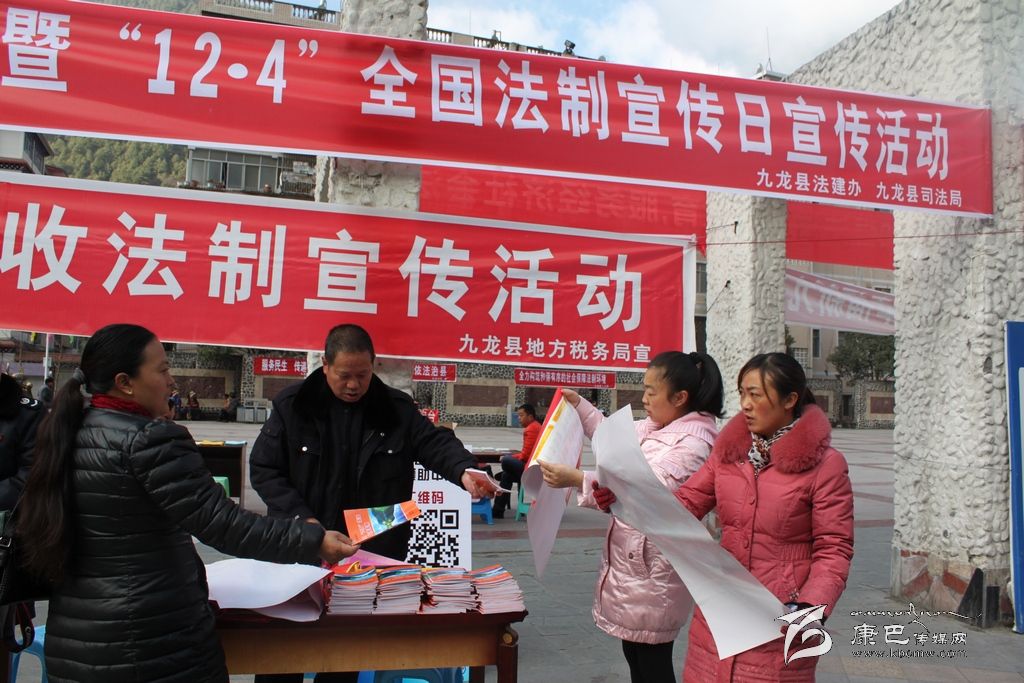 在活動(dòng)現(xiàn)場(chǎng),各單位采取以通過發(fā)放法制宣傳資料、法制日歷掛圖、現(xiàn)場(chǎng)進(jìn)行法律咨詢、展出法制圖片展板、懸掛橫幅等靈活多樣的宣傳方式,多角度、多層次地宣傳了《憲法》、《九龍縣“六五“普法宣傳手冊(cè)》、《安全生產(chǎn)法》、《環(huán)境保護(hù)法》、《移民政策法律法規(guī)宣傳手冊(cè)》、《道路交通安全法》、《稅法》、《食品安全法》、《勞動(dòng)合同法》、《森林防火條例》等與人民群眾密切相關(guān)的法律法規(guī)知識(shí)。